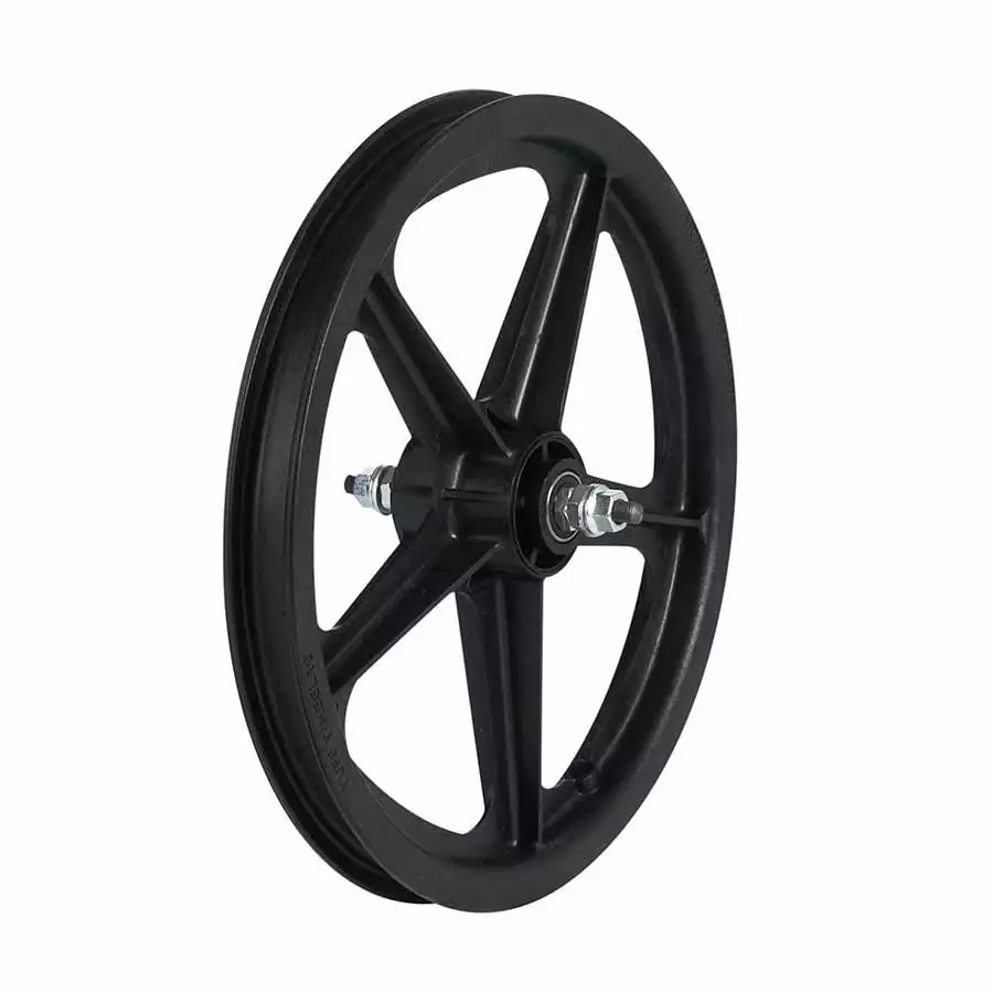 Skyway Tuff II 16″ BMX Wheels 5 Spoke 3/8″ Bolt. Skyway’s original Tuff wheel. Built to accommodate pneumatic or non-pneumatic tires.