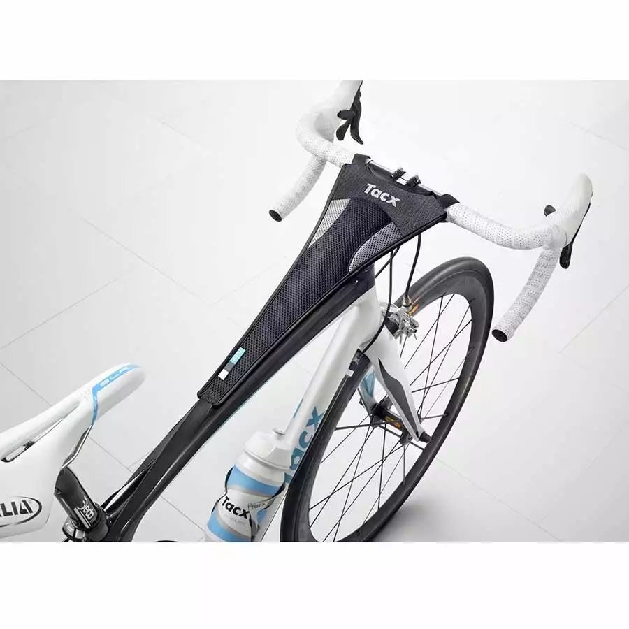 The Tacx trainer sweat cover T2930 fits over the handlebars and the seatpost, absorbing drops of perspiration and protecting the bike from corrosion