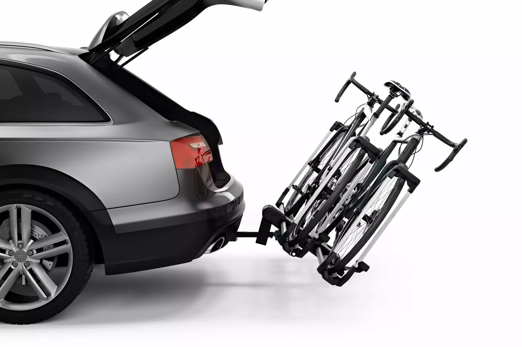 Convenient access to the rear of the vehicle using the HitchSwitch lever to tilt the rack down, even with bikes on it