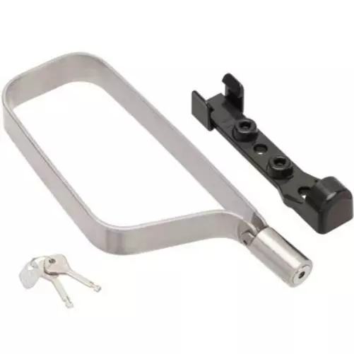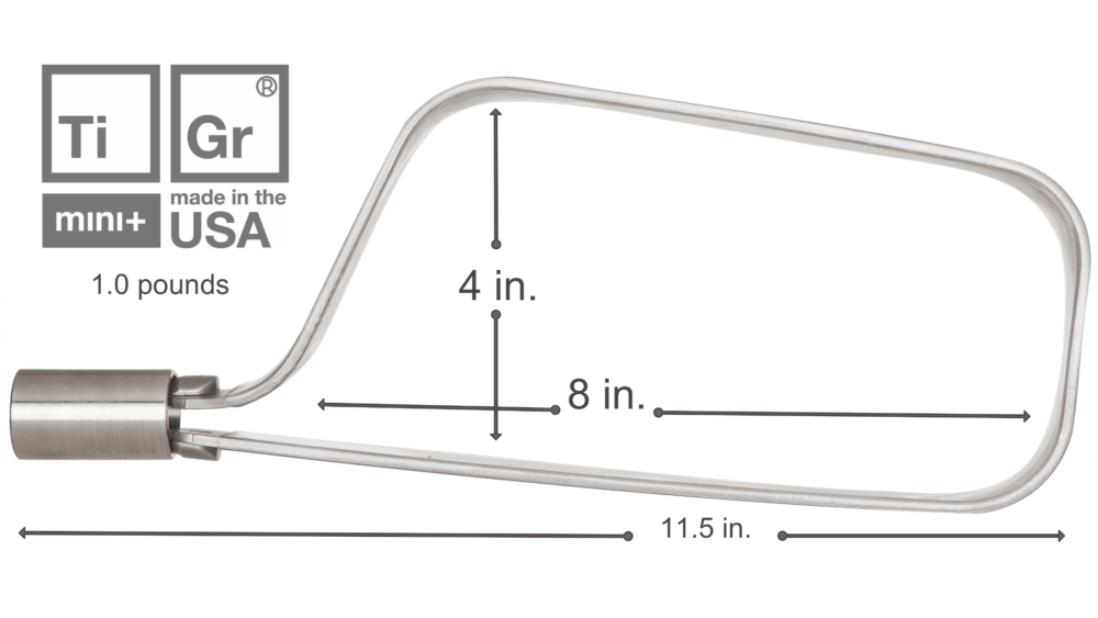 TiGr Mini+ Security Titanium Bike U Lock Shackle w/Mounting Clip. Mounting clip included, 1 lbs. 11.5 inches length. 4” x 8”.Titanium shackle Locks. Proprietary coupling design. Rotating disc-locking mechanism. Lightweight & compact, easy to bring along for the ride. Push-button locking mechanism, quick lock-ups. Easy-to-install/use frame mounting – no rider rattle.