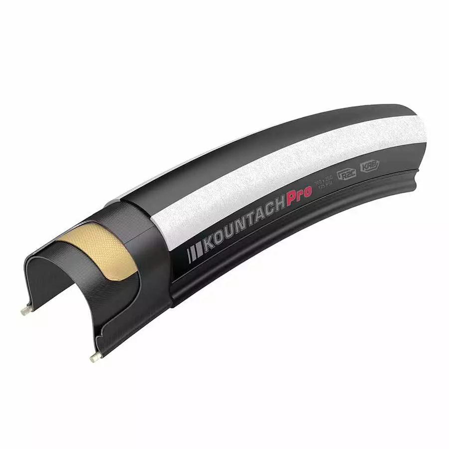 Kenda Kountach Pro Tire Folding 700 x 28 R2C. Compound: R2C, Tech: RHP, TPI: 120, PSI: 110, RHP, Black. Smooth center tread with textured shoulders. R2C Rubber Compound. Iron Cloak Belt flat protection.