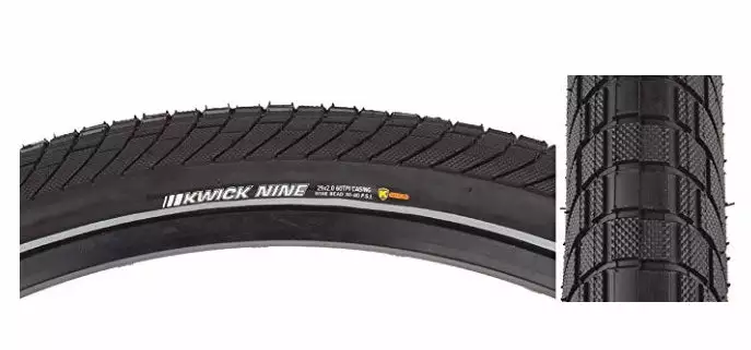 Kenda Kwick Nine 29er Tire. Introducing the new Kwick Nine 29’er, this mega sized tire gives you all the big wheeled fun of a 29’er and brings it to the streets for 2014. The smooth tread design lets you take your big mountain rig and travel effortlessly through the city. The Kwick Nine 29’er also features K-Shield flat protection for worry free urban adventures. So, wrap that mountain steed with a set of Kwick Nine 29’ers and explore the urban landscape. Premium Trekking, Comfort, or Commuting Tire. Featuring K-Shield Flat Protection. Reflective Tape across sidewalls for better urban nighttime visibility.
