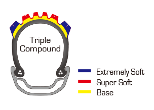 Triple compound construction for a responsive yet grippy tire