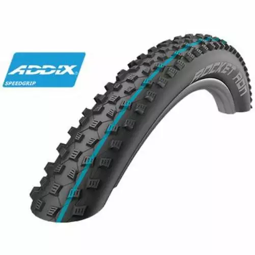 Schwalbe Rocket Ron Super Ground HS 438 Addix Speed Grip Tubeless Easy Folding Tire 27.5 Fast XC tire combining speed and corner control. Ultralight 127-EPI-Evo carcass. Tread design for optimum rolling and self-cleaning properties.