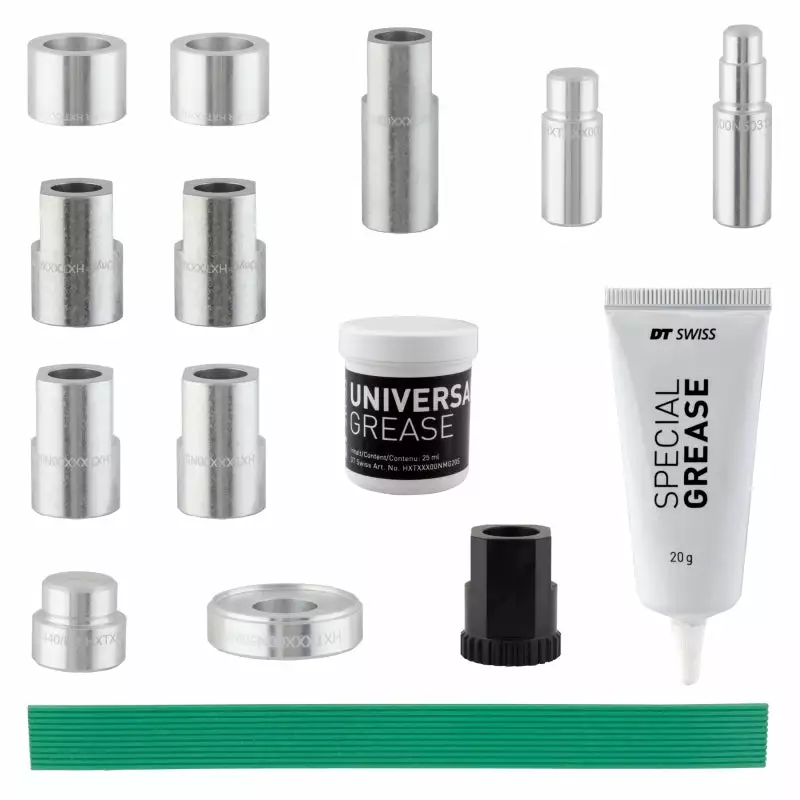 Tool kit for the complete service of DT Swiss H240/FR/240S/440/190 front and rear hubs