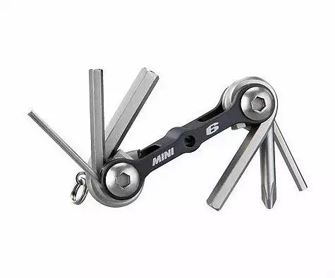The Topeak Mini 6 Multi Tool includes handy tools in a compact package. The Topeak Mini 6 Multi Tool folds into an anodized extruded alloy body. The Topeak Mini 6 Multi Tool includes 2, 3, 4, 5, 6mm Allen wrenches, and a Phillips screwdriver.