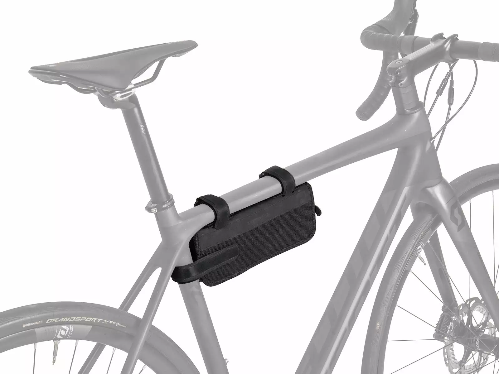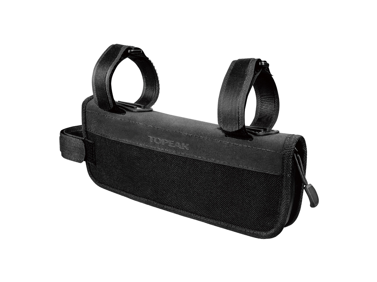 Attaches to top tube with velcro straps