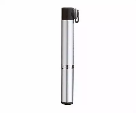Aluminum barrel weighs a paltry 65 g. Slips easily into a jersey pocket, high pressure design pumps to 160 psi.