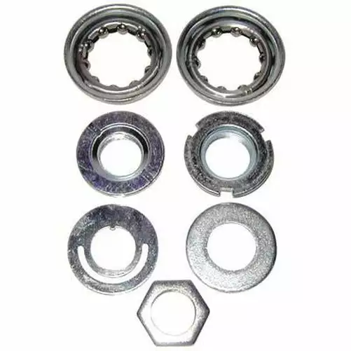 Wald 1-Piece Bottom Bracket Set Includes (2) cups, (2) #66 retainers, right and left cones. Also includes a spacer, keyed washer and locknut.