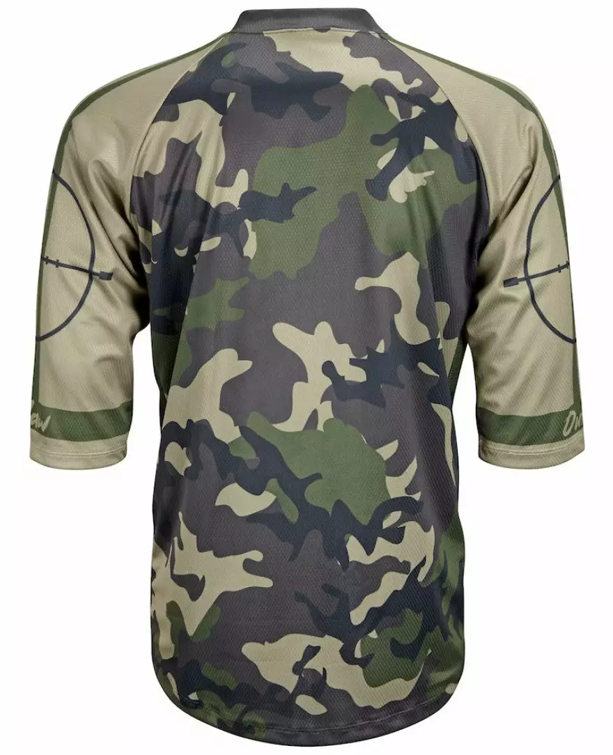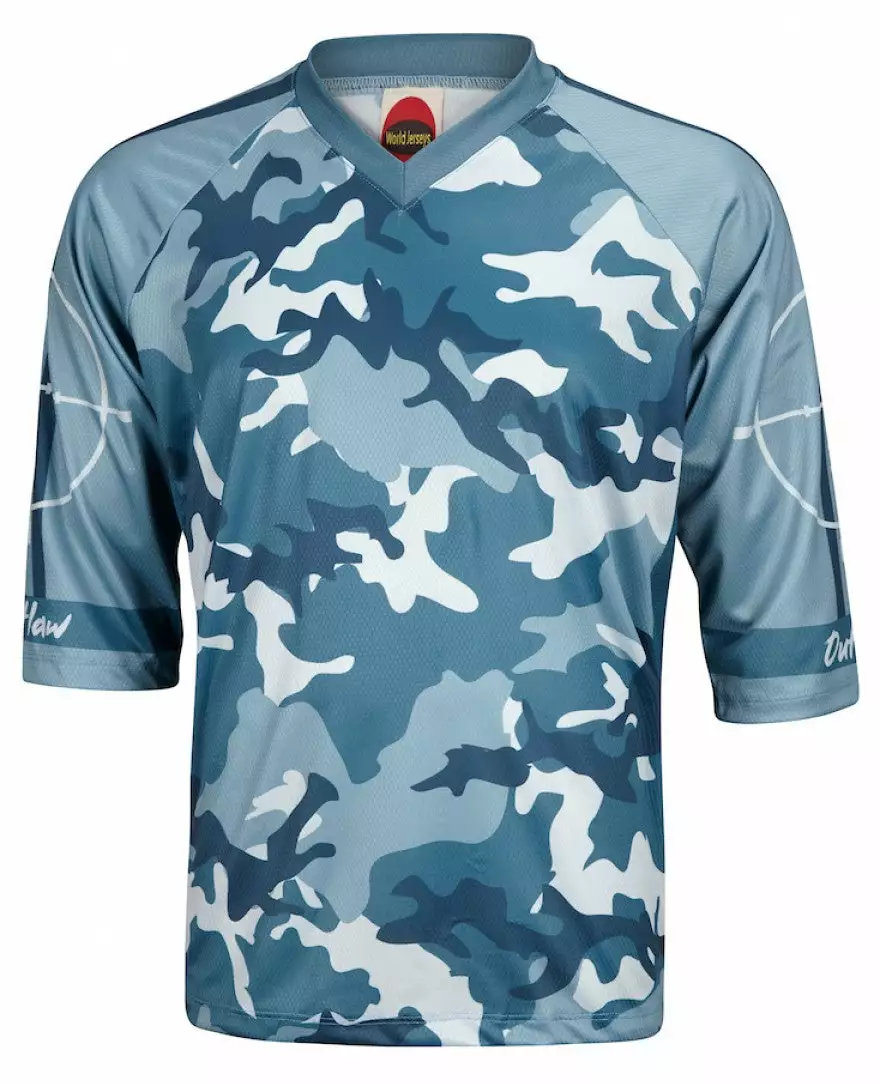 The Outlaw Men’s Mountain Bike Jersey features a 3/4 length sleeve and a loose fitting casual style. The loose fit on this mountain bike jersey provides great mobility while on the trail while still providing ample room for protective gear. The jersey also features a flat V Neck collar which provide a great fit. Like most jerseys this mountain bike jersey is constructed out of dry sport polyester. The breathable lite weight fabric works to wick moisture away from the skin to keep you dry and cool on those hot days out on the trail. The jersey has no elastic on the waist of cuffs and no pockets. Its perfect for use with a hydration pack. Need some shorts to complement your mountain bike jersey? We have those too. Ride in what our employees ride in. What has been a proven great all around great mountain bike jersey at an exceptional value.ย