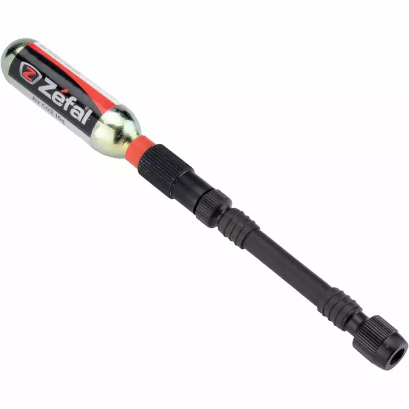 The Zefal Co2 EZ Control FC w/16g Co2 Cartridge inflator is a fast way to inflate any bicycle tire. No more messing with mini-pumps that take to much effort and time to inflate a tire. Just screw the nozzle onto your presta or schradrer valve and inflate instantly. The EZ Control feature allows you to control the pressure that is going into the tire.