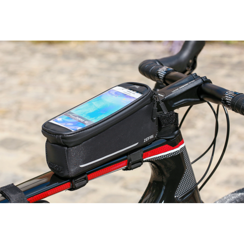 2-in-1 top tube pack with integrated smartphone pouch and window