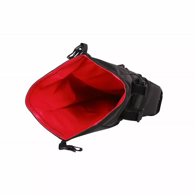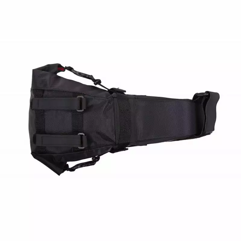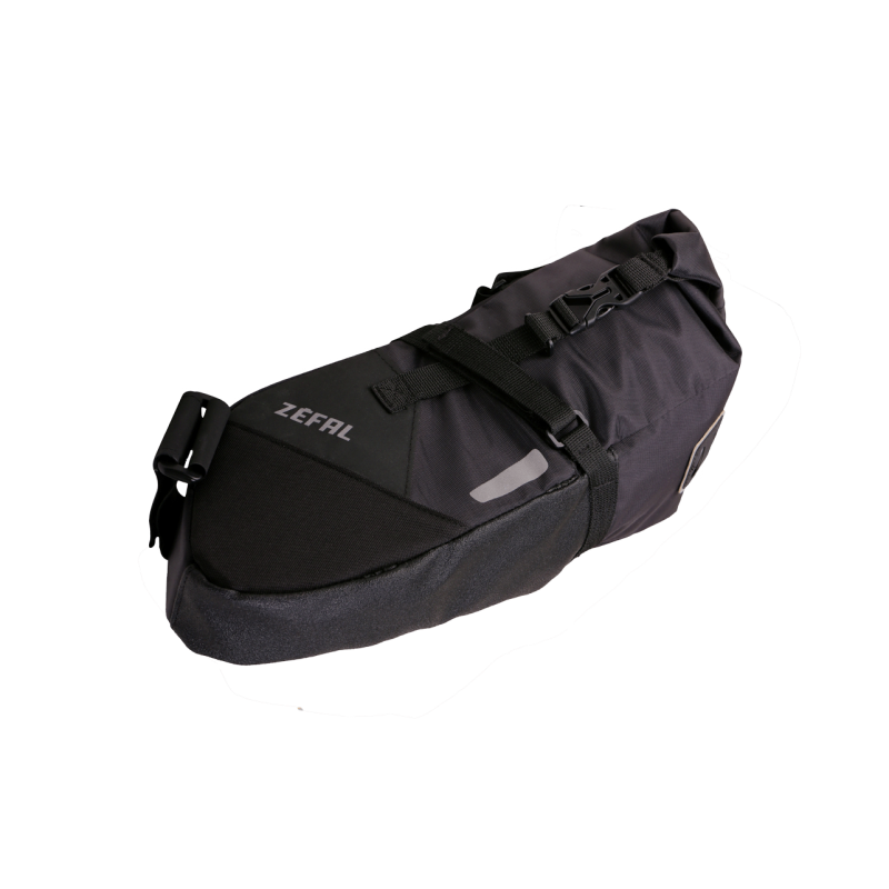 Equipped with several durable self-adhesive straps and anti-tear material on its base, this bag attaches to the saddle rails and seat post for optimal weight distribution on the bicycle